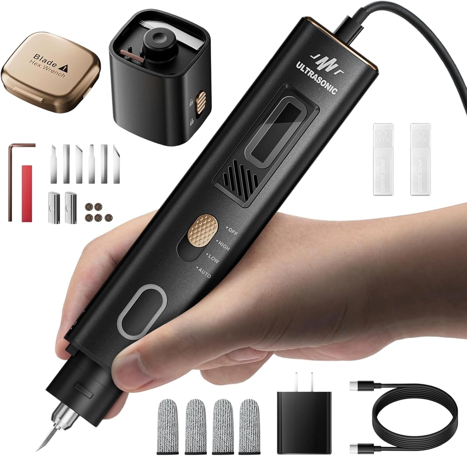 - Multi-Functional Modes: The ultrasonic cutter knife features precision cutting, grinding, and polishing modes, making it compatible with a wide range of materials, including carbon fiber, acrylic, leather, metals, wood, 3D-printed resins, PCBs, and more.