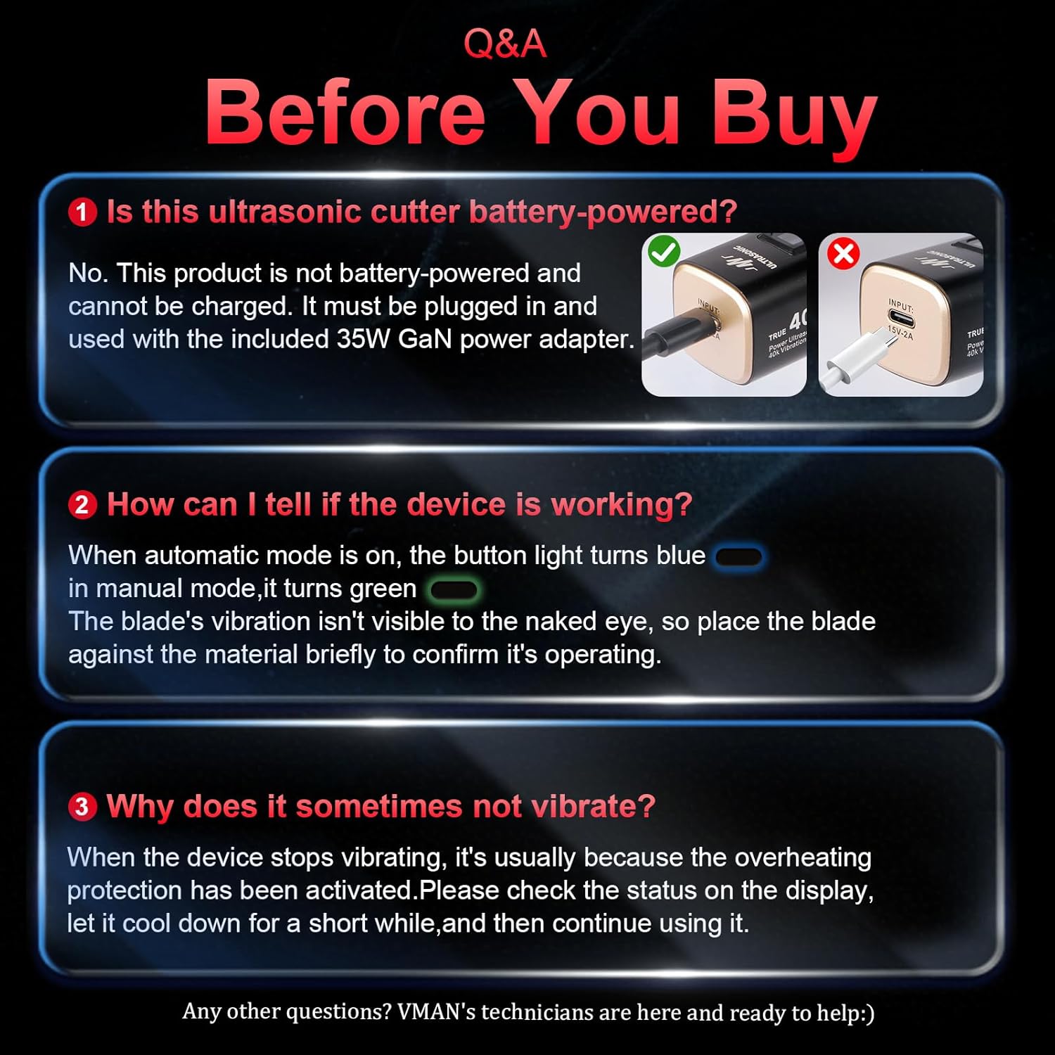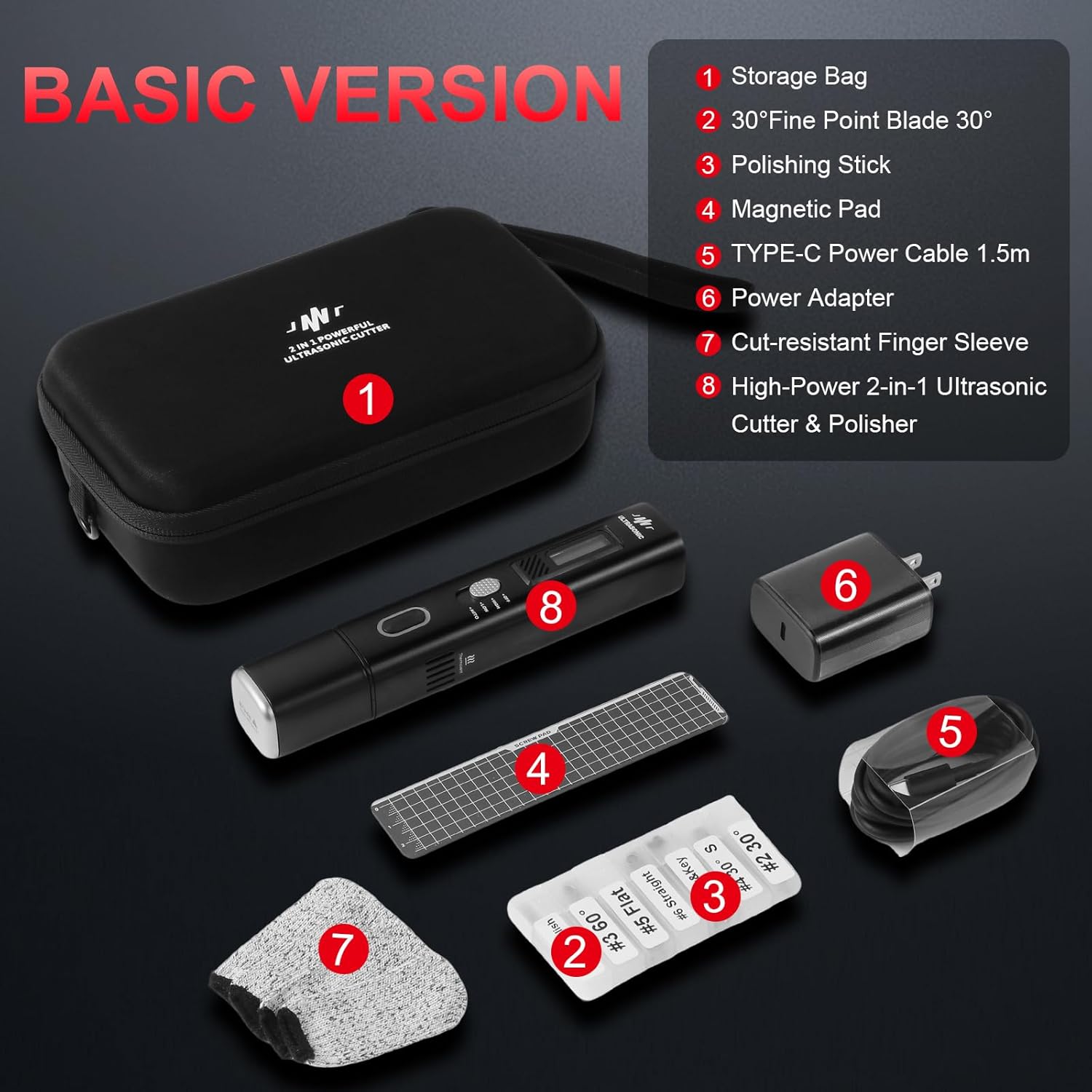 - Proprietary Blade System: 24mm 30° flat-base single-tip blade outperforms standard blades. The Pro version of handheld ultrasonic cutteradds specialized blades (60° narrow, chisel, straight) for precision tasks.